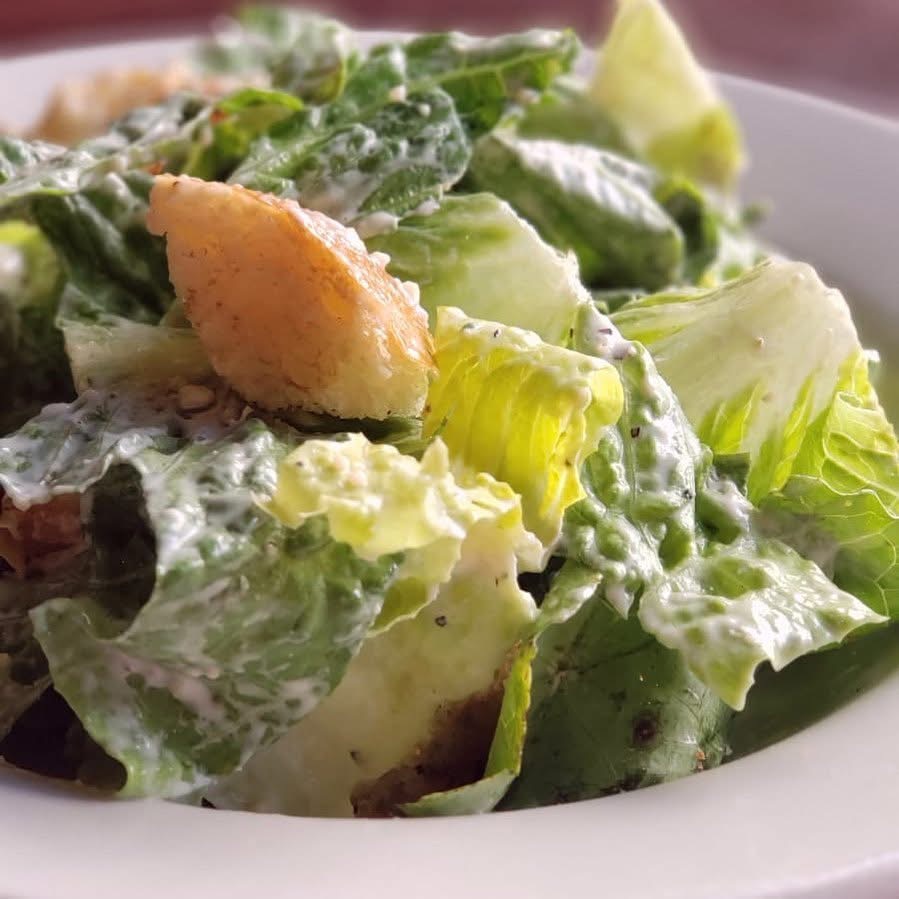 Caesar Salad – Fresh romaine tossed with crunchy croutons and creamy Caesar dressing at Leonore’s Restaurant Virginia.