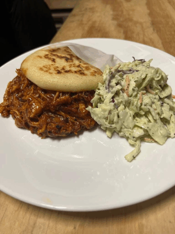Asado – Venezuelan arepa stuffed with slow-roasted steak in our chef’s sweet sauce, served warm at Leonore’s Restaurant Virginia.
