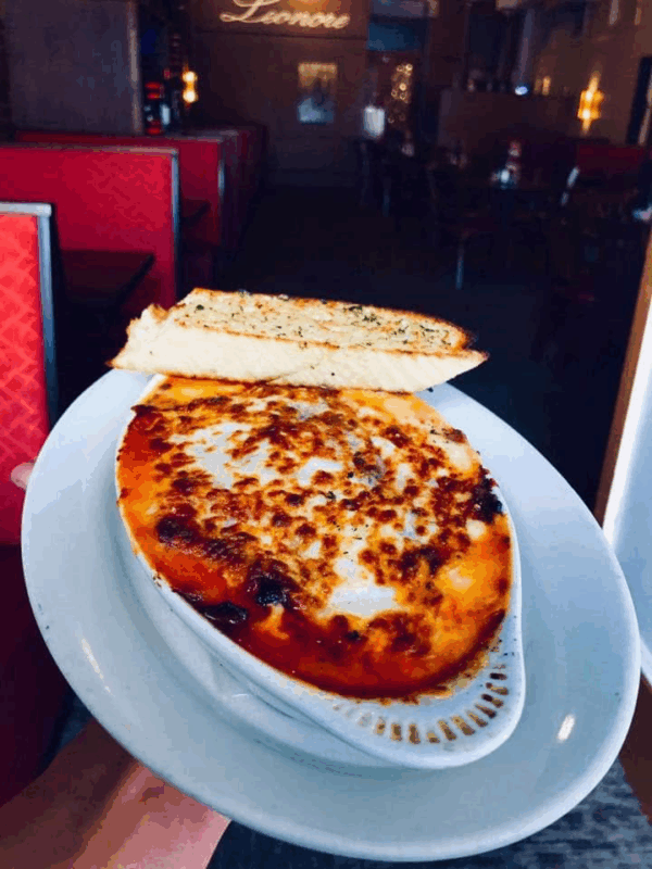 Pasticho – Venezuelan-style lasagna layered with ham, mozzarella, béchamel, and parmesan, baked fresh at Leonore’s Restaurant Virginia.