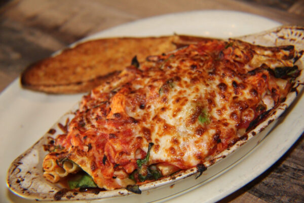Veggie Lasagna – Spinach, ricotta, red pepper, mozzarella, mushrooms, and parmesan layered fresh at Leonore’s Restaurant Virginia.